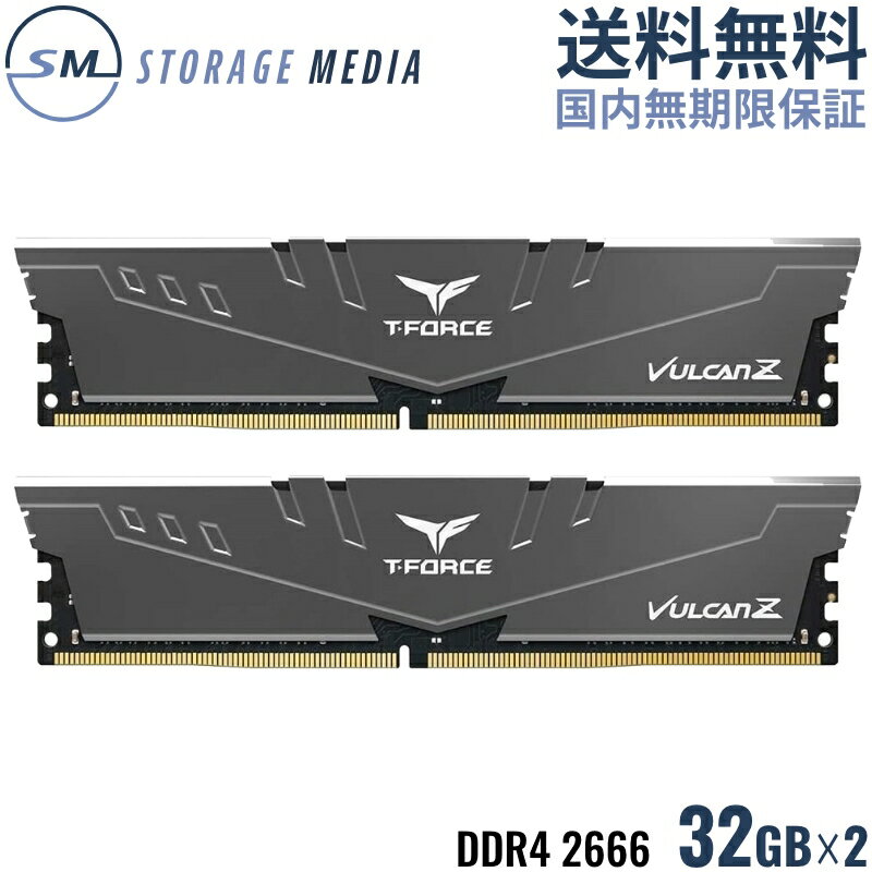 TEAM T-FORCE VULCAN Z GRAY DDR4 2666 64GB (32GB×2) デスクトップ用 メモリ 2枚組 グレー OCメモリ XMP2.0対応 PC4-21300 CL18 TLZGD464G2666HC18HDC01-EC