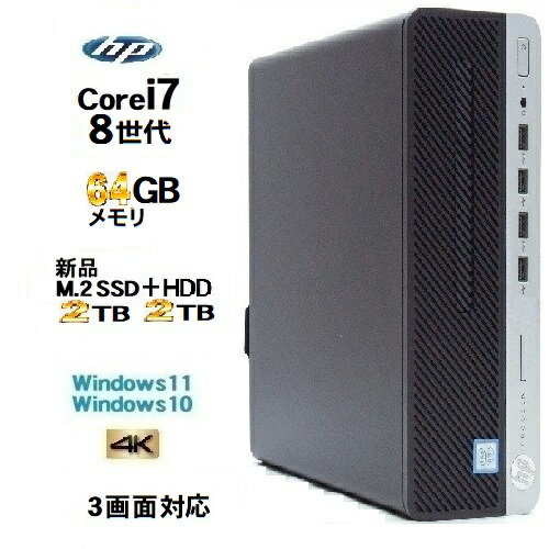 | HP 600 G4 SF 8世代 Core i7 8700 メモリ64GB 高速新品M.2 Nvme SSD2TB+新品HDD2TB office Windows10 Pro 64bit Windows11 デスクトップパソコン デスクトップPC 中古パソコン Win10 Win11 3画面出力対応 4K 対応 美品 dtb-249R 10249433