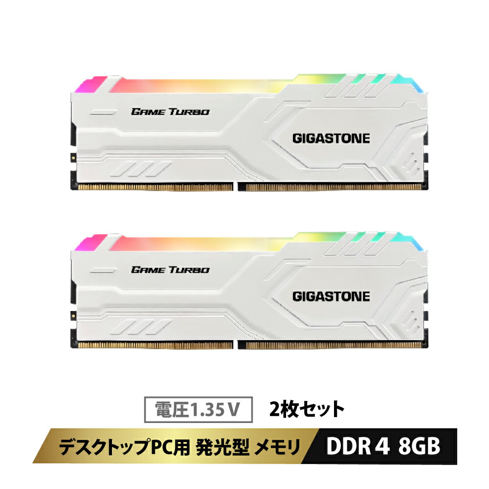 GIGASTONE発光型デスクトップPC用メモリ RGB Game Turbo 白 White DDR4 8GBx2枚 (16GB) DDR4-3200MHz PC4-25600 CL16